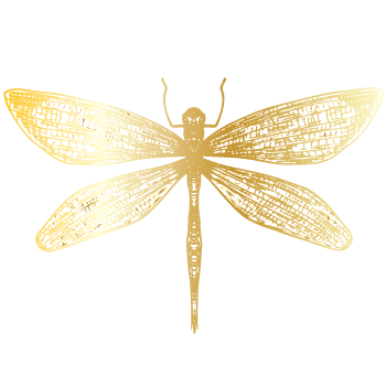 A golden dragonfly logo